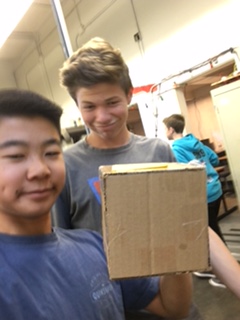We did another Wednesday challenge. Everybody got into pairs and had to complete the task of cutting out a perfect 1 foot by 1 foot cardboard square.