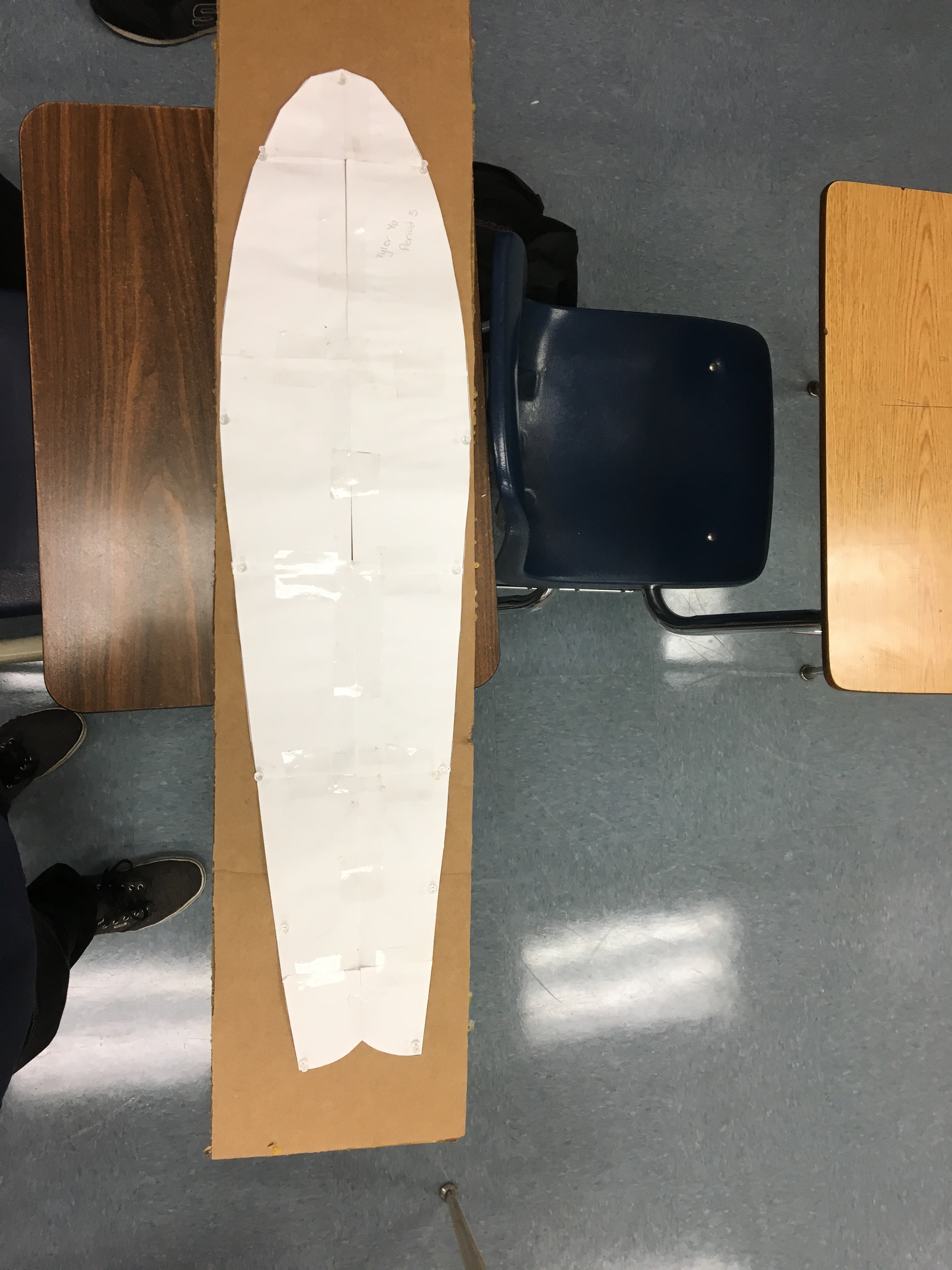 Today was a pretty chill day in the shop. All that I did was retape the printed out pieces of my skateboard because yesterday I messed it up. It kept separating in the middle and it got me worried that I had to re-print, but it eventually worked itself out at the end.