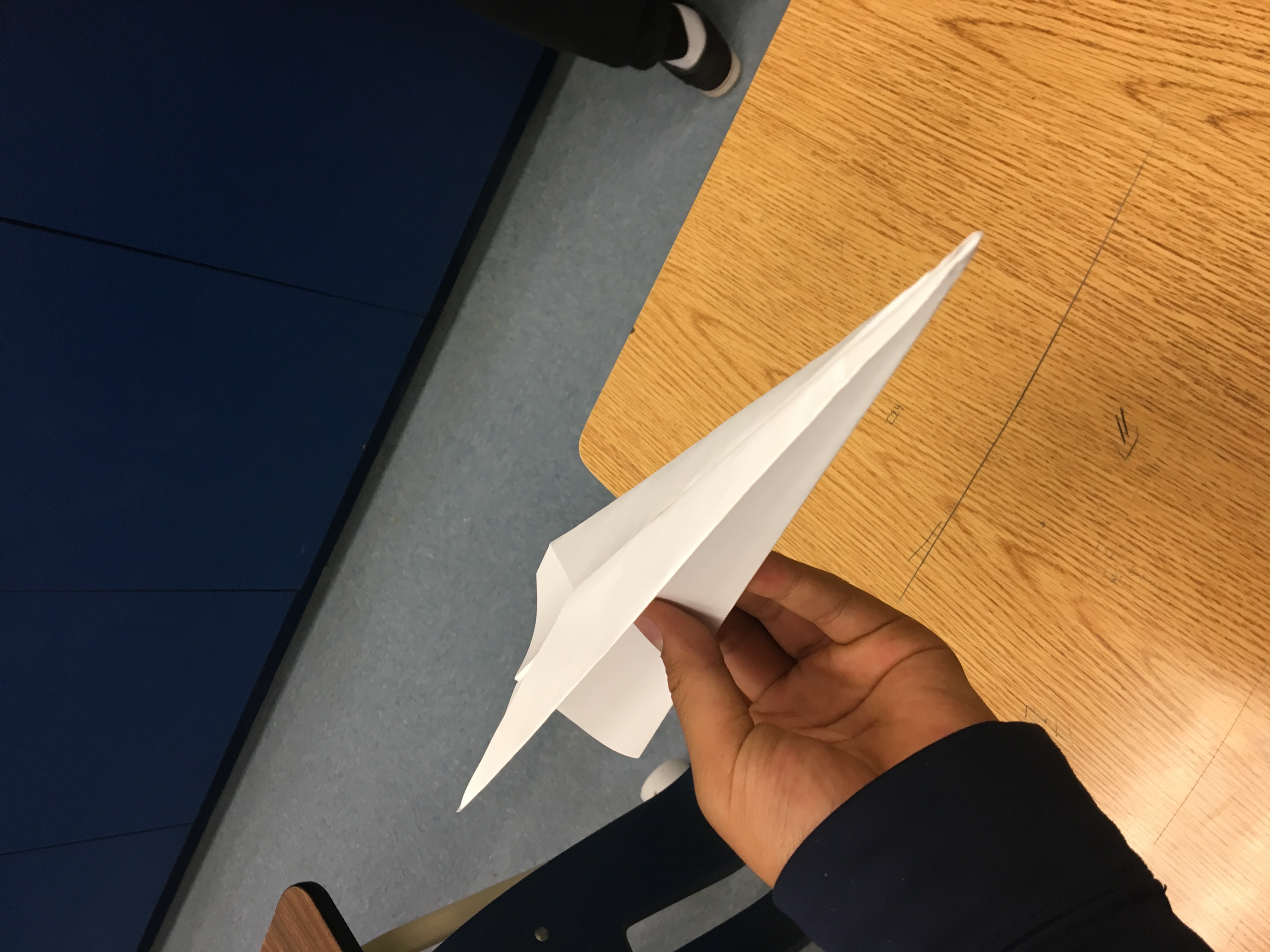 Today we did another wednesday challenge. The challenge was to to Create a design for a paper airplane and trade it with another group. The group to farthest fly the design that they received won.Evan and I just used a very simple design where you have to fold the design in 2 times and then create wings. The design that we received was more complicated. We created a very easy to fold and aero dynamic paper airplane.