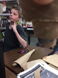 Today was another Wednesday Challenge. Everyone had to get in groups of 4-5, with one of the individuals being a veteran. My group consisted of Raul, Mason, Jaden, and Ian. The task was to create a model boat tail out of carboard for a rocket. Mr. Miller gave every group a packet explaining the information and formulas needed. My group was extremely confused so we just goofed off the entire period and played with Mason's rubicks cube.
