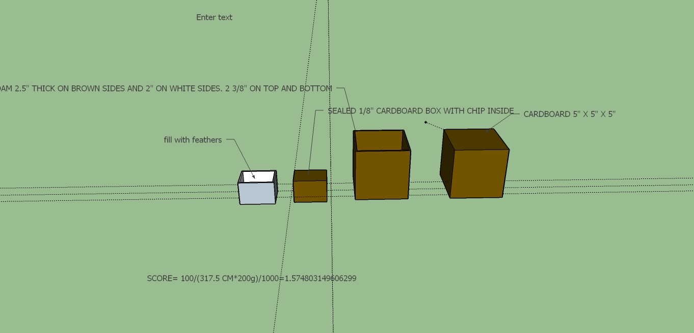Today Evan and I worked on the chip project again came up with a design to fabricate. The compartment would consist of one 6x4x4 box stuffed with cotton balls and the pringle chip in the middle. The design was simple and protected the chip well. Thats pretty much all we did during the class period.