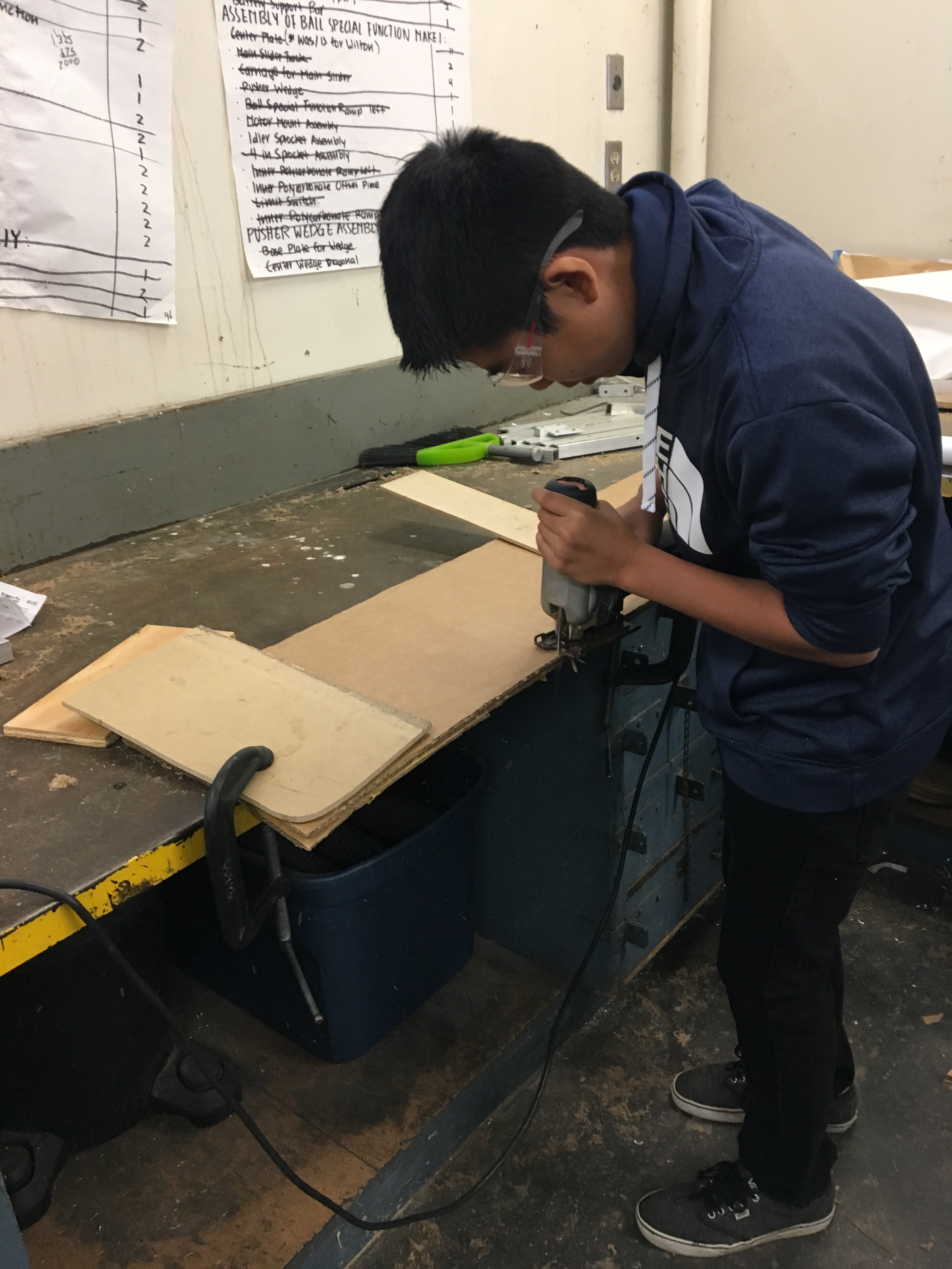 the shape of it onto the cardboard and cut it out. It was my first time using that type of saw. It was pretty cool and a lot